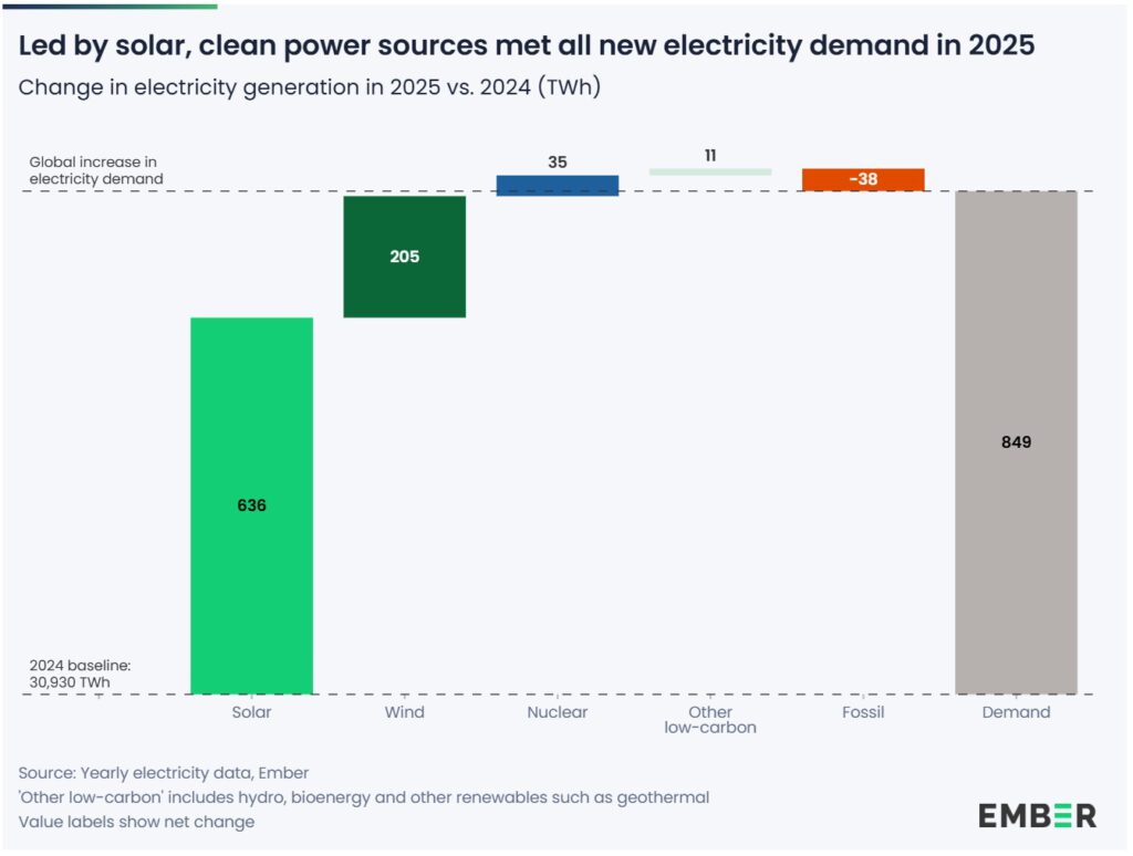 Diese Woche veröffentlichte EMBER den Global Electricity Review 2026. EMBER ist ein spendenfinanzierter globaler Think Tank, der die Energiewende beschleunigen will. Ihr Electricity Review beleuchtet jedes Jahr aktuelle Entwicklung der des Strommarktes – weltweit und länderspezifisch. Der Review 2026 zeigt ein anderes Bild und dieses gibt Anlass zur Freude: