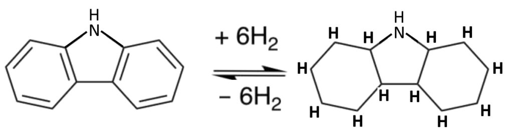 Als LOHC stehen verschiedene Varianten zur Auswahl. Für die Hobbychemiker – die meisten Varianten basieren auf Benzol-Ringen. Beim Beladen werden die Doppelbindungen aufgebrochen und schaffen so Platz für Wasserstoff. Am Zielort baut man das Gleiche wieder zurück.