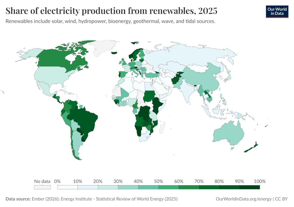 Quelle Share of electricity generated by renewables – OurWorldInData