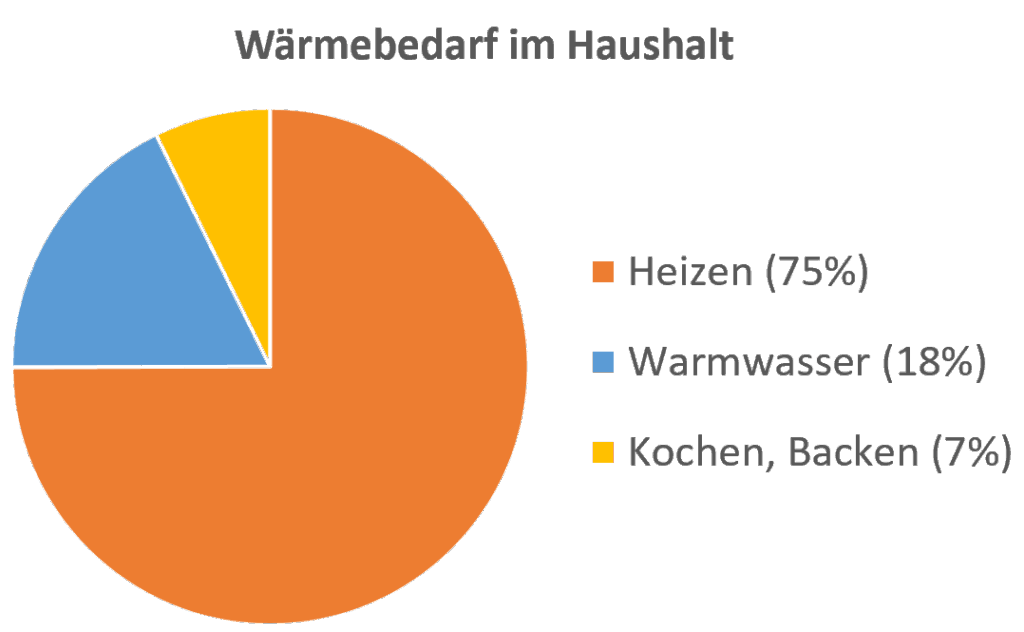 Wenn es kalt ist, macht der Mensch Feuer an, so ist das seit 790.000 Jahren. Auch heute heizt Mensch seine Wohnung überwiegend mit Feuer. Teilweise flackert es offen im Kaminofen, häufiger brennt es unauffällig im Keller. Öl- und Gasflammen heizen heute 73% unserer Gebäude, weitere 4% heizen mit Holz. Unsere Heizungen pusten jedes Jahr 147 Mio. Tonnen CO₂ in die Luft. Das sind rund 19% der deutschen Emissionen insgesamt. Hinzu kommen noch Warmwasser (3,6%) sowie Kochen, Backen, Spülen, Wäsche (1,7%), doch Heizen stellt den Löwenanteil unseres privaten Wärmebedarfs (vgl. Umweltbundesamt).